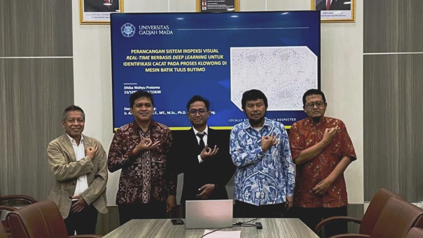 Dhika Wahyu Pratama, mahasiswa Program Magister Teknik Industri, Departemen Teknik Mesin dan Industri (DTMI) UGM, mempresentasikan tesisnya yang berjudul “Sistem Inspeksi Visual Real-Time Berbasis Deep Learning untuk Identifikasi Cacat pada Proses Klowong di Mesin Batik Tulis Butimo” dalam ujian tesis yang dilaksanakan pada Selasa (09/09).