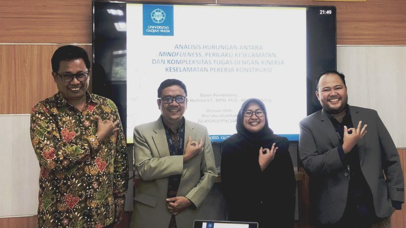 Mahasiswa Magister Teknik Industri, Departemen Teknik Mesin dan Industri (DTMI) UGM, Mar’atus Shalehah, berhasil menyelesaikan Ujian Tesis pada Jumat (14/01), dengan mengangkat isu krusial terkait keselamatan kerja di sektor konstruksi, salah satu sektor dengan tingkat kecelakaan kerja tertinggi di Indonesia maupun secara global. Penelitian ini dilaksanakan di bawah bimbingan Prof. Ir. Budi Hartono, S.T., MPM, Ph.D., IPU., ASEAN Eng., serta diuji oleh Prof. Ir. Subagyo, Ph.D., IPU., ASEAN Eng. dan Ir. Ardiyanto, S.T., M.Sc., Ph.D., AEP, IPM..