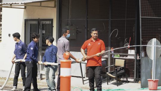 Jumat (17/10), Departemen Teknik Mesin dan Industri (DTMI) Universitas Gadjah Mada mengadakan kegiatan pelatihan Alat Pemadam Api Ringan (APAR). Kegiatan yang dimulai sejak pagi, yaitu pukul 07.30 WIB bertempat di lapangan voli DTMI. Kali ini, pelatihan APAR diselenggarakan sebagai wujud kerja sama oleh tim Safety, Health, and Environment (SHE) DTMI bekerja sama dengan PT Bromindo. Kegiatan ini melibatkan dosen yang diwakilkan oleh Sekretaris DTMI, Dr.Eng. Adhika Widyaparaga, tenaga kependidikan, laboran, dan mahasiswa dalam satu tujuan yang sama—meningkatkan kesiapan dan keterampilan dalam menghadapi potensi bahaya kebakaran.
