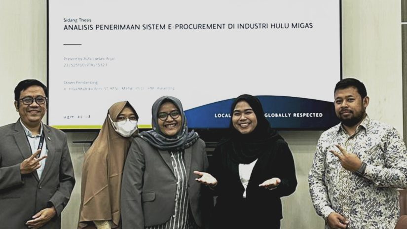 Mahasiswa Magister Teknik Industri, Departemen Teknik Mesin dan Industri (DTMI) UGM, Aufa Laelani Anjali, berhasil mempertahankan tesis berjudul “Analisis Penerimaan Sistem E-Procurement di Industri Hulu Migas” pada Rabu (29/10). Ujian tesis ini dihadiri dosen pembimbing tesis Aufa, Ir. Hilya Mudrika Arini, S.T., M.Sc., M.Phil., Ph.D., IPM., ASEAN Eng., dengan tim penguji yang terdiri dari Ir. Fitri Trapsilawati, S.T., Ph.D., IPM., ASEAN Eng., Prof. Ir. Budi Hartono, S.T., MPM, Ph.D., IPU., ASEAN Eng., dan Ir. Achmad Pratama Rifai, S.T., M.Eng., Ph.D., IPM..