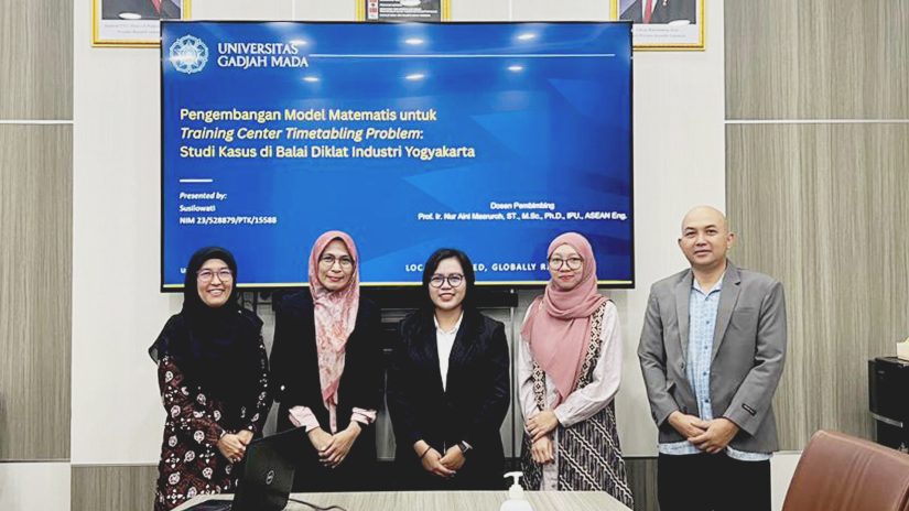 Dalam Ujian Tesis yang dilaksanakan pada Jumat (08/08) di Ruang Sidang A-3, mahasiswa Program Magister Teknik Industri, Departemen Teknik Mesin dan Industri (DTMI) UGM memaparkan isi tesisnya yang berjudul “Pengembangan Model Matematis untuk Training Center Timetabling Problem: Studi Kasus di Balai Diklat Industri Yogyakarta.” Penelitian ini menjawab tantangan penjadwalan tim kerja yang selama ini masih dilakukan secara manual menggunakan spreadsheet, sehingga memerlukan waktu sekitar lima hari kerja dan kerap menimbulkan bentrok jadwal serta ketidakseimbangan beban kerja antar personil.