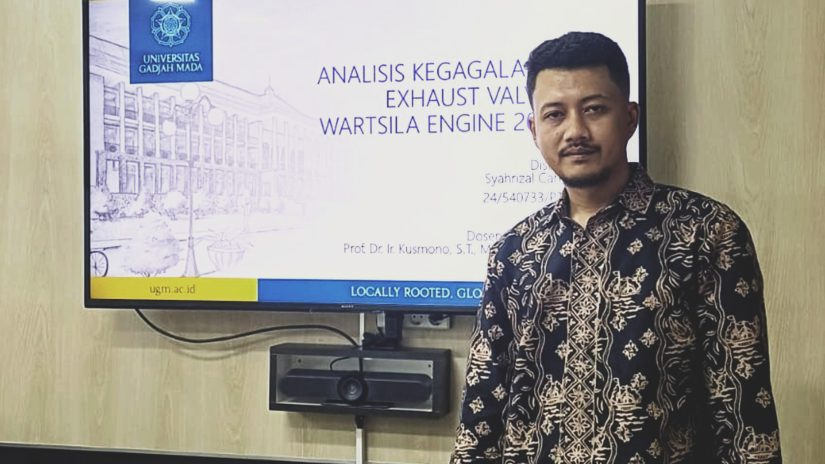 Mahasiswa Program Magister Teknik Mesin, Departemen Teknik Mesin dan Industri (DTMI) UGM, Syahrizal Cahya Taufik, melaksanakan ujian proposal Tugas Akhir pada Senin (12/01) di Ruang Sidang A-4, Laboratorium Dinamika DTMI UGM. Dalam penelitian ini, Syahrizal mengangkat topik strategis berjudul “Analisis Kegagalan pada Exhaust Valve Seat Wärtsilä Engine 20V34SG”, yang berfokus pada peningkatan keandalan mesin gas industri sebagai tulang punggung pembangkit energi.
